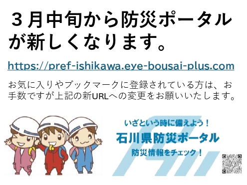 最新の災害情報・気象情報は、石川県防災ポータルをご覧ください。(外部リンク)