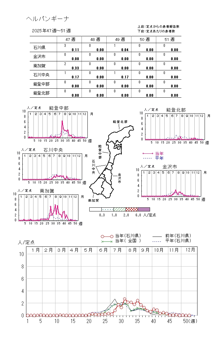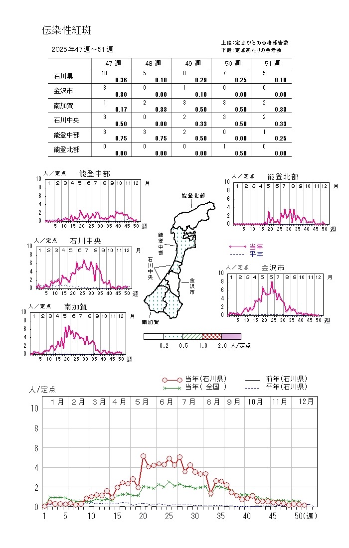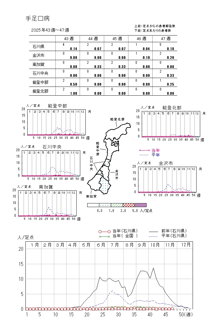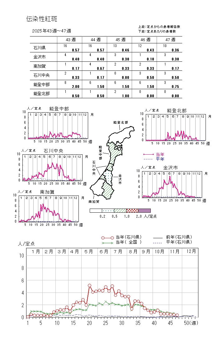 上記各疾患の年齢階級別報告数や週別報告数推移はこちらのリンク先をご覧ください。