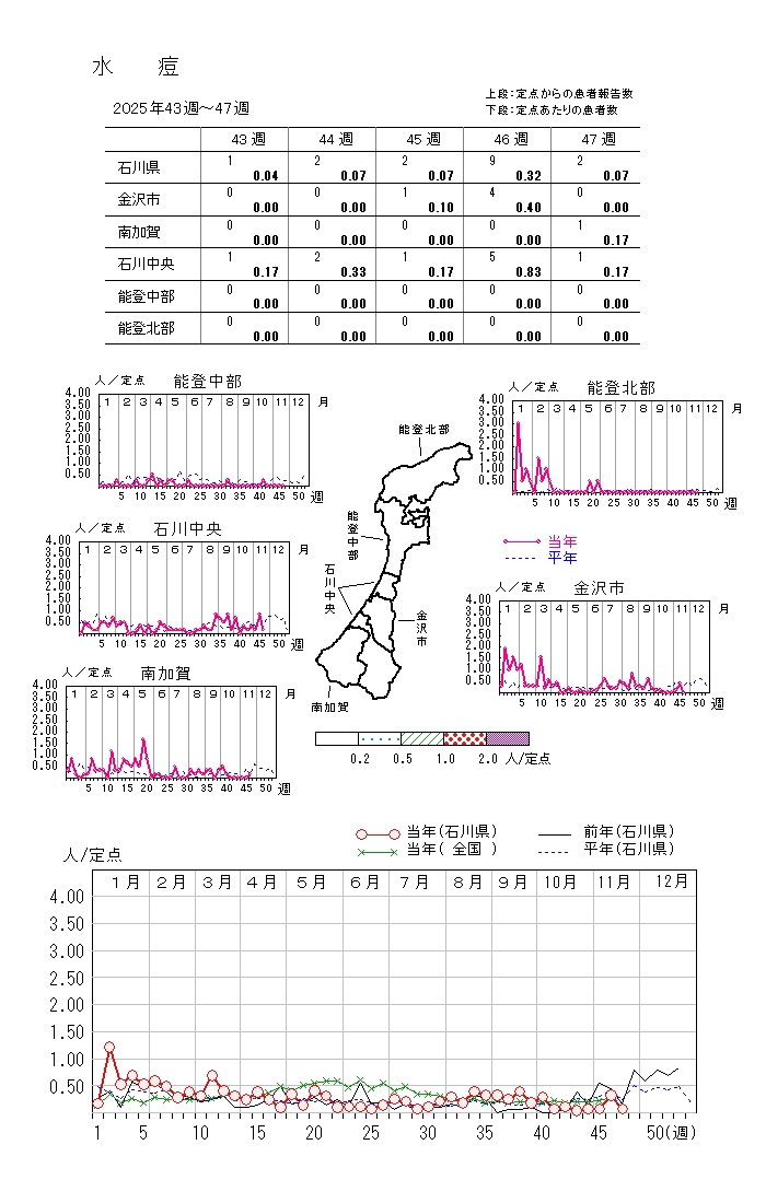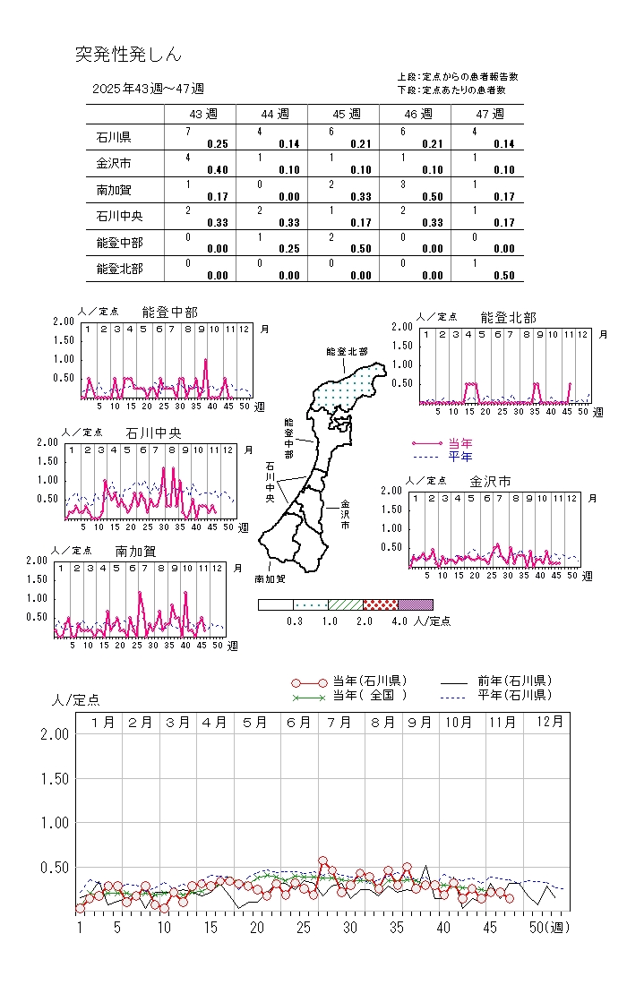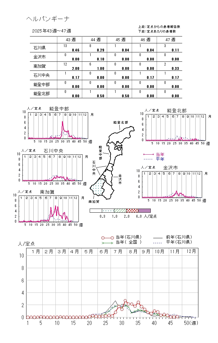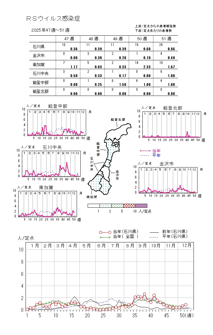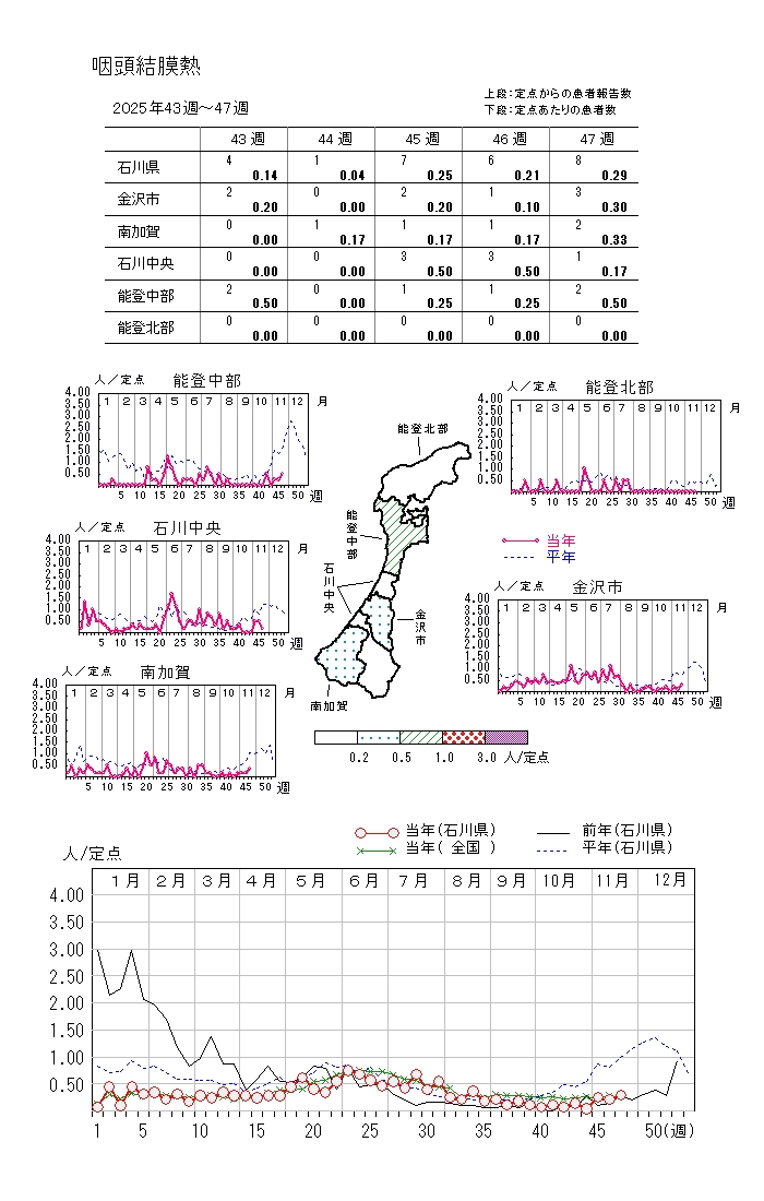 上記各疾患の年齢階級別報告数や週別報告数推移はこちらのリンク先をご覧ください。